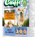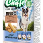 Ciuffi Bisko — это хрустящее лакомство для собак средних и крупных пород. Содержит витамины A, D₃ и E. Подходит в качестве поощрения или ежедневного угощения. Состав:Злаки, масла и жиры, сахара, мясо и продукты животного происхождения (курица 1%), растительные субпродукты, минеральные вещества (трифосфат натрия 0,6%). Пищевая ценность (на 100 г):Сырой белок: 10,31%Сырой жир: 7,00%Сырая клетчатка: 0,50%Сырая […] | ||